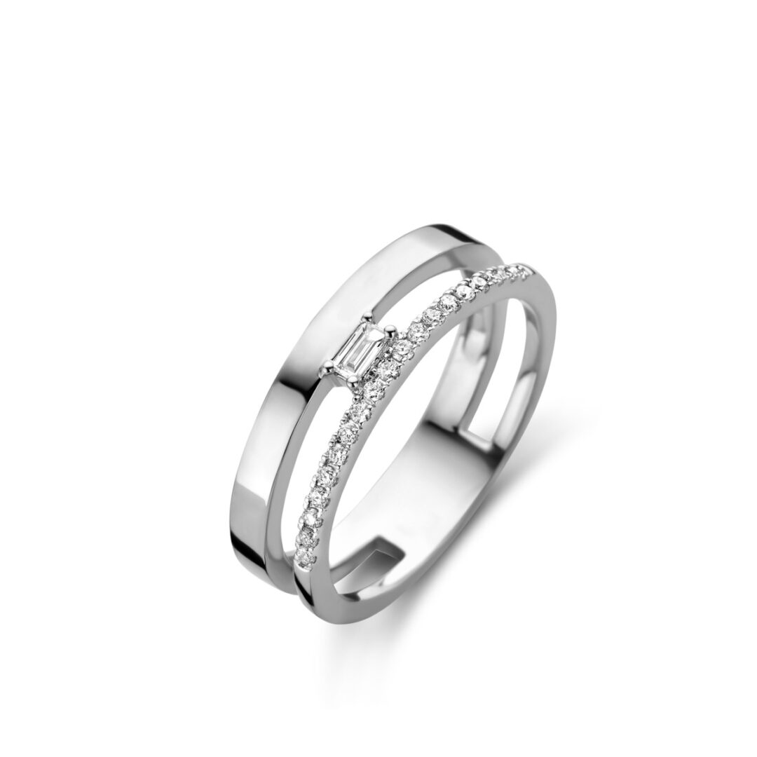 BAGUE LIGNES DIAMANTS BAGUETTE ET RONDS OR BLANC 18 CARATS CHERBOURG