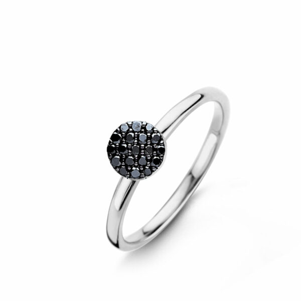 Bague collection Eolo par One More Joaillerie Belgique. Or blanc 18 carats et diamants noirs.