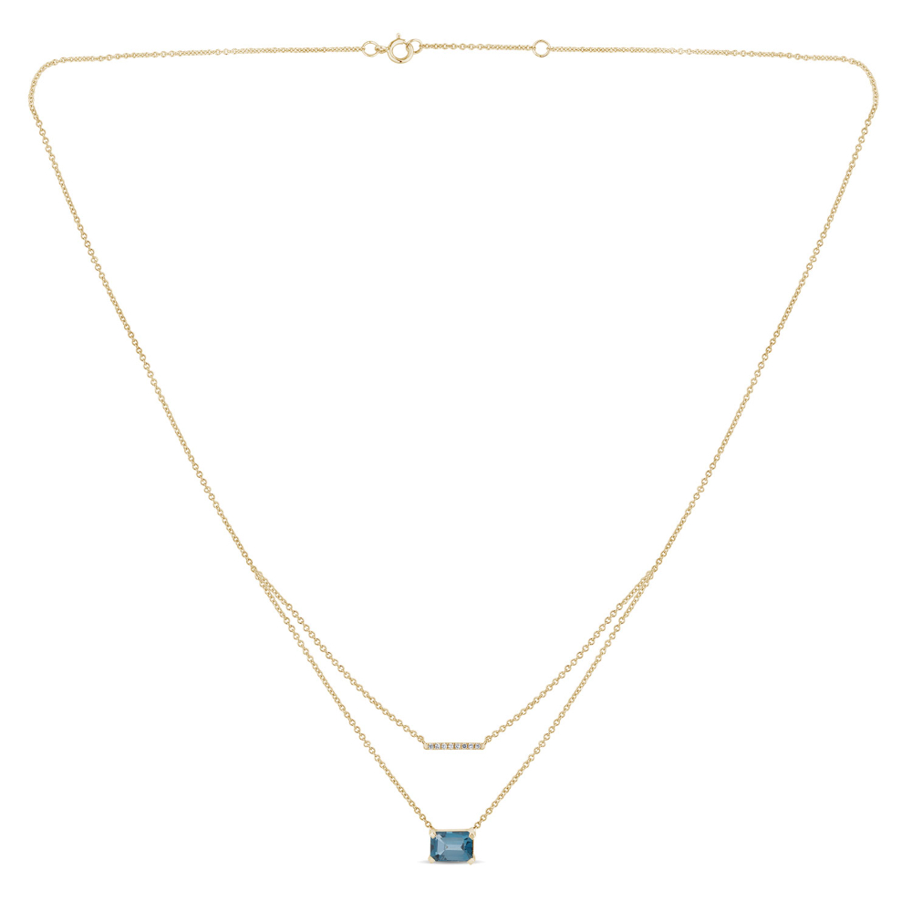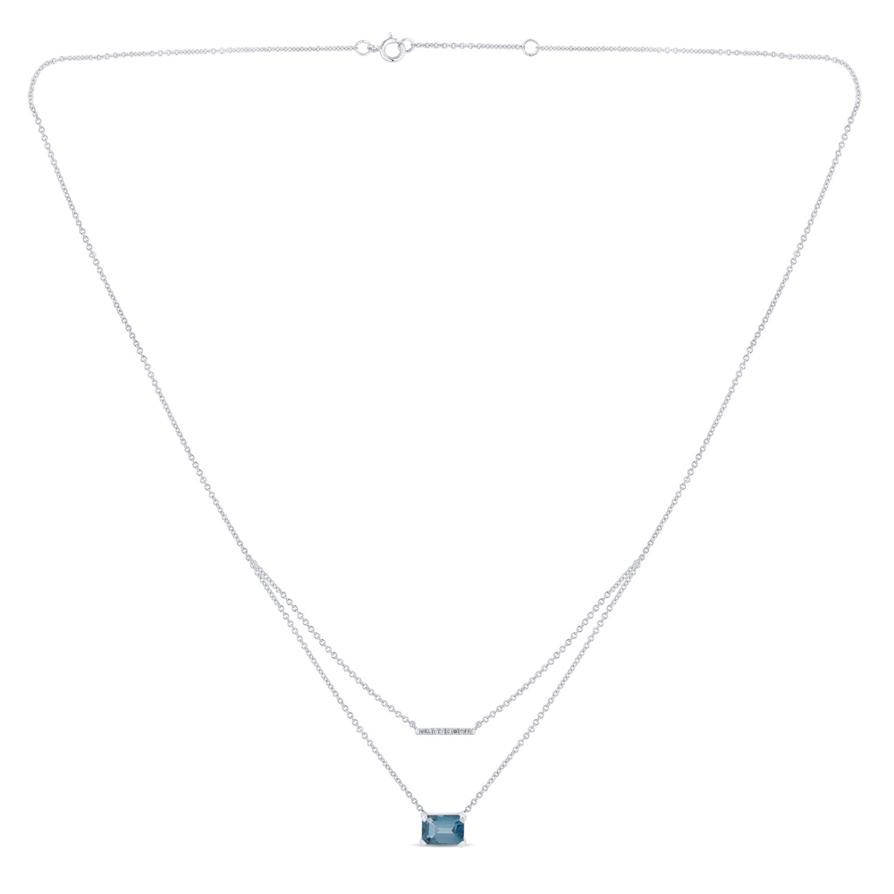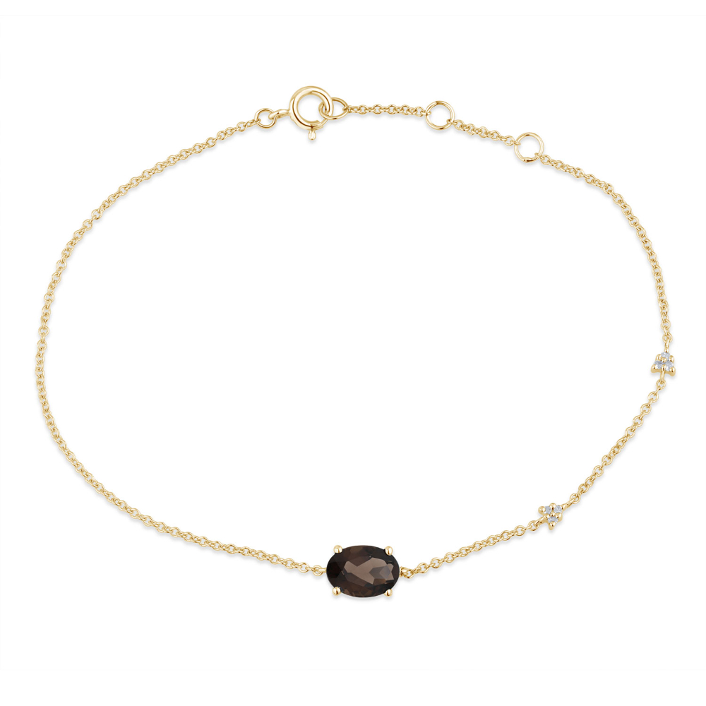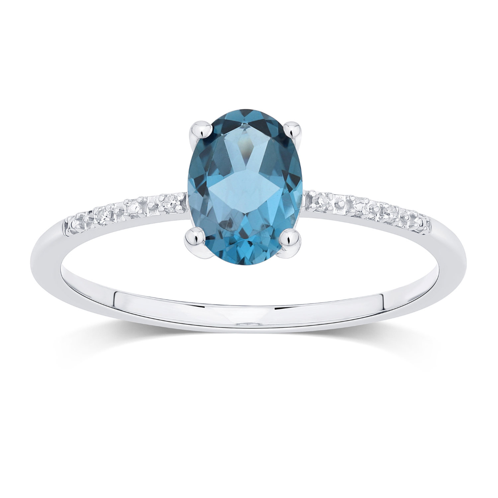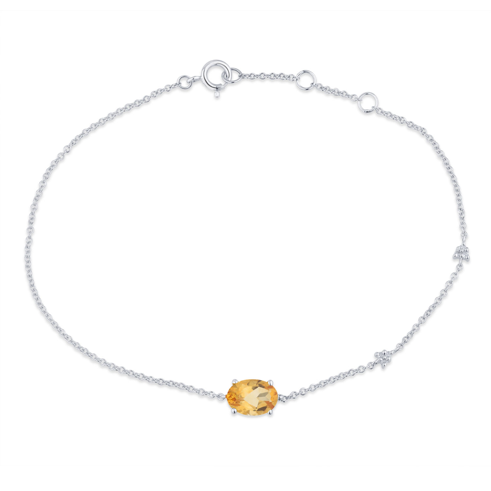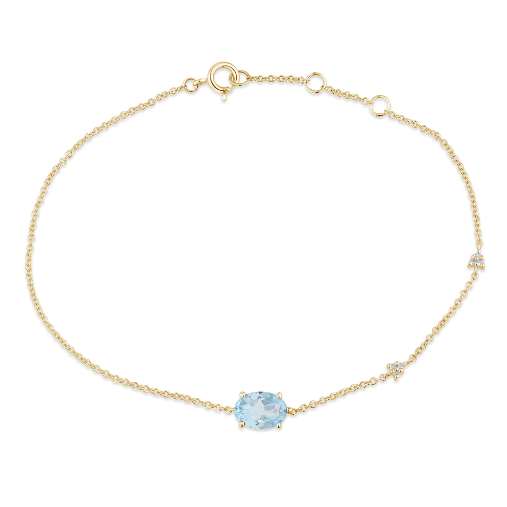 Un bracelet fin et délicat, la pierre de centre est une topaze bleu Swiss, d’un joli bleu lumineux, taille ovale sertie 4 griffes accompagnée de petits diamants taille rond facetté sertis sur la chaîne.