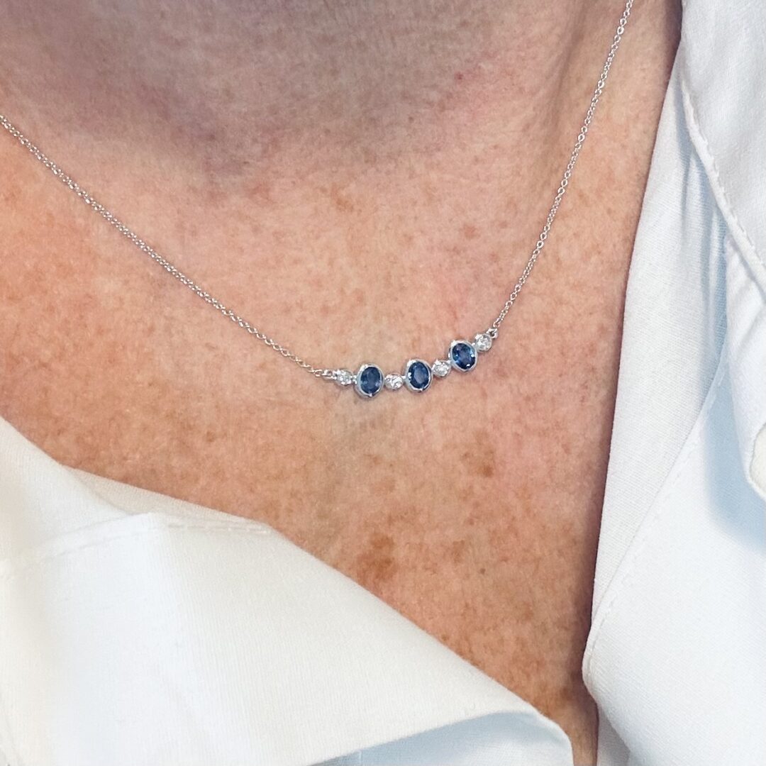 Ligne moderne et intemporelle, ce collier saphirs se porte aussi bien tous les jours que pour une soirée élégante.