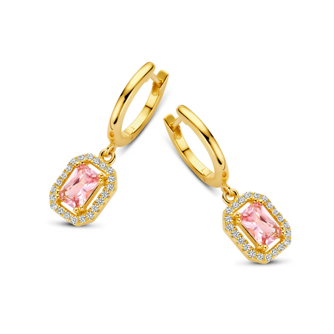 Un joli collier délicat et romantique. 1 oxyde de zirconium taille émeraude de couleur rose tendre, serti griffes, délicatement entouré d’oxydes de zirconium sertis .