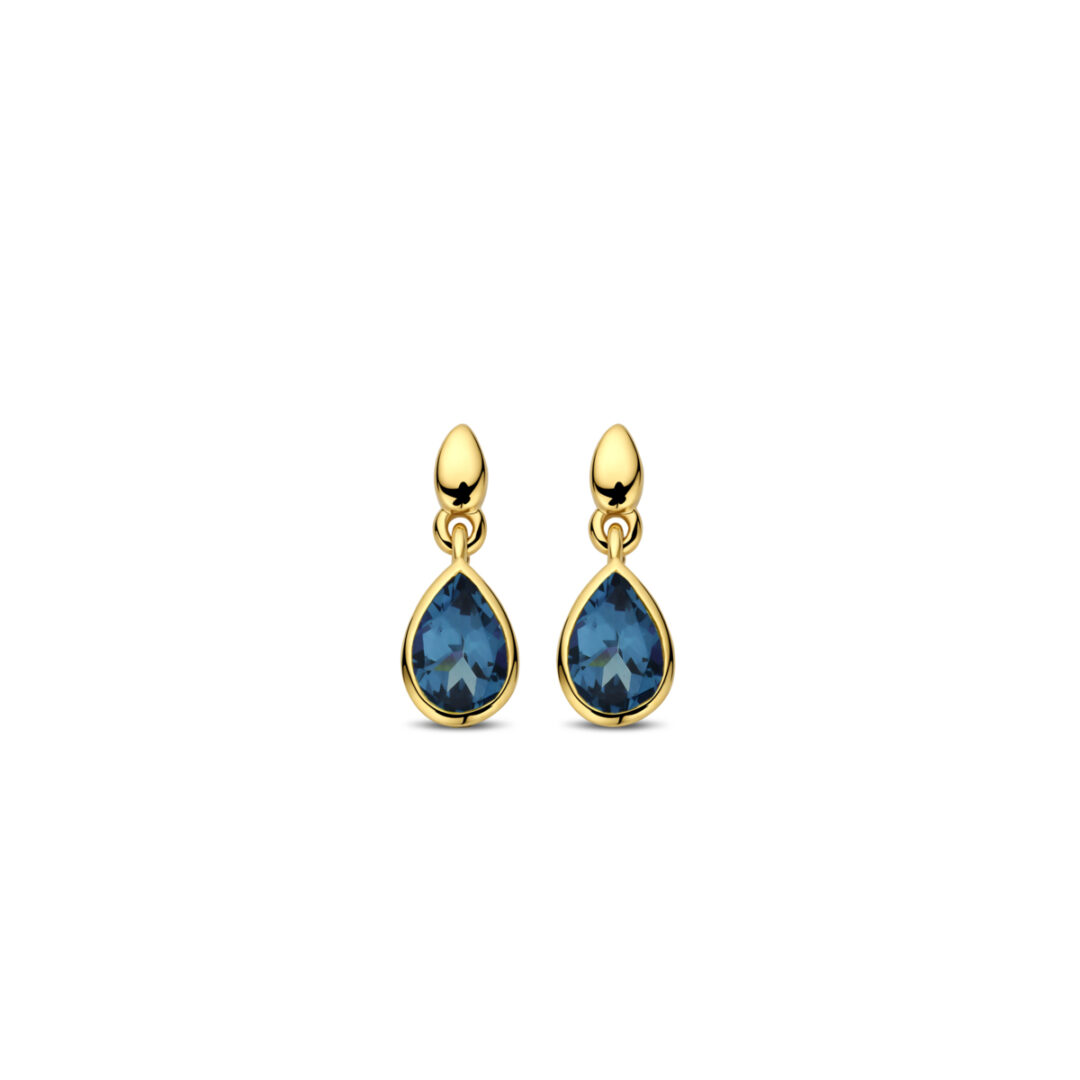 Une topaze bleue London lumineuse, en forme de goutte facettée, sertie clos. Pas de diamants, uniquement cette jolie pierre de couleur. Un joli bijou précieux et féminin.
